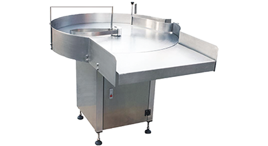 The Turn Table operates through a rotating stainless-steel disc, which gently moves bottles in a circular motion. When used as a feeding table, the operator manually loads bottles onto the rotating disc. The bottles are then directed onto the conveyor in an upright and orderly fashion.